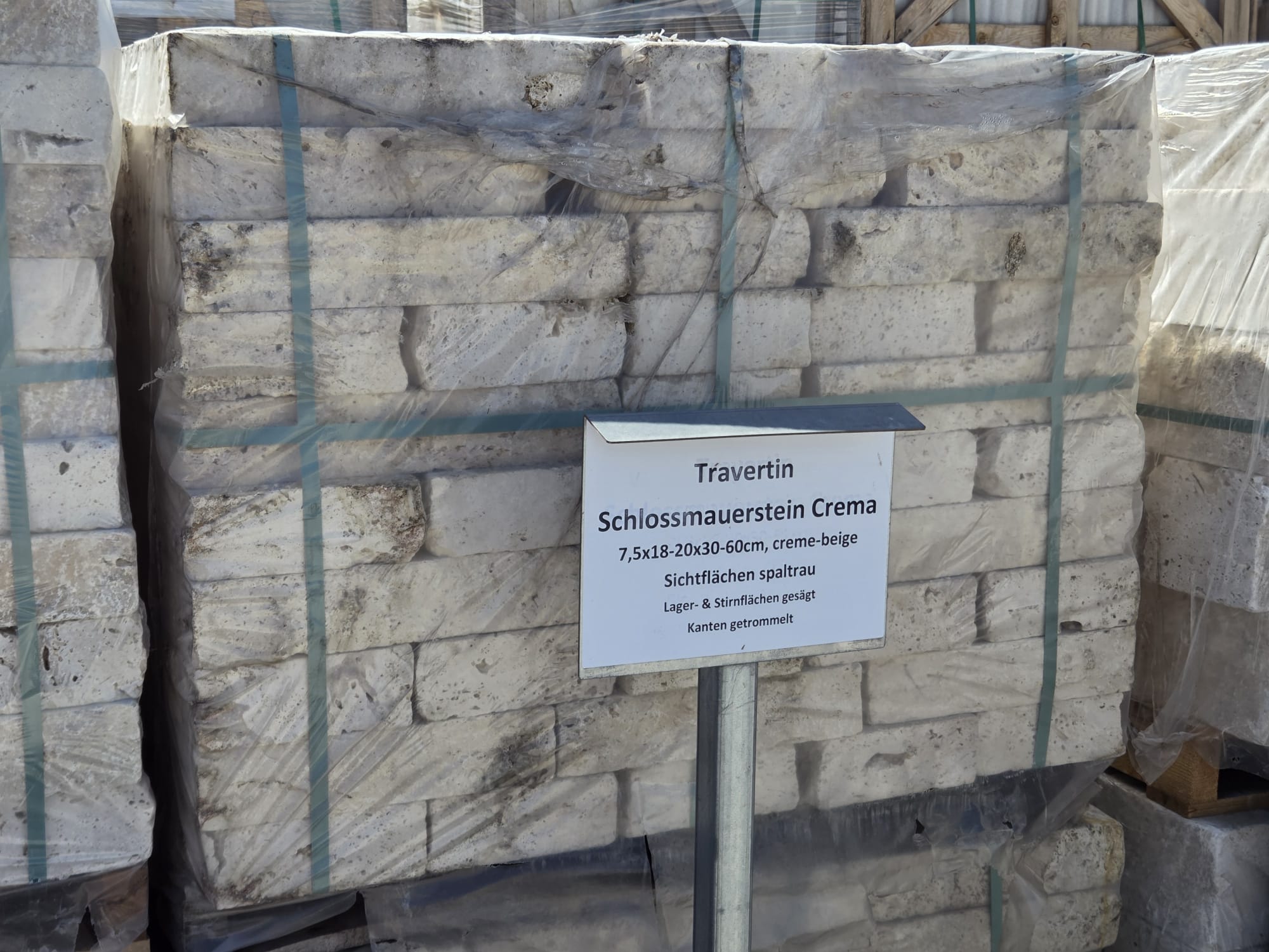 Travertin Schloss Mauerstein Crema 7,5×18-20×30-60 cm creme-beige